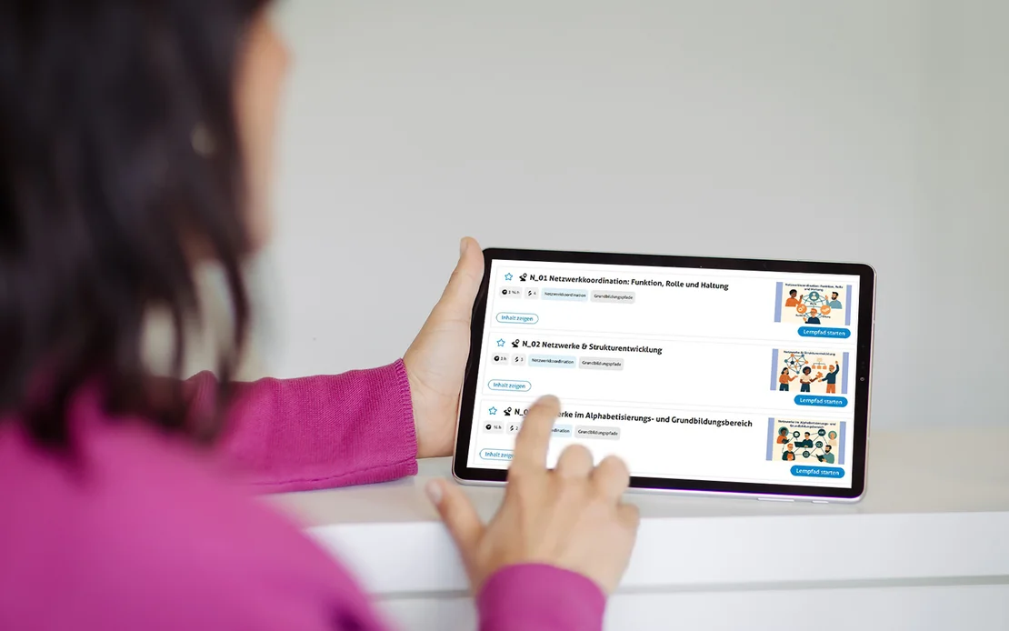 Wir sind das Kompetenzzentrum GrundbildungsPFADE. Zusammen mit zehn regionalen Projekten wollen wir bis 2028 die Grundbildungsstrukturen in diesen Regionen ausbauen und nachhaltige Grundbildungspfade entwickeln.